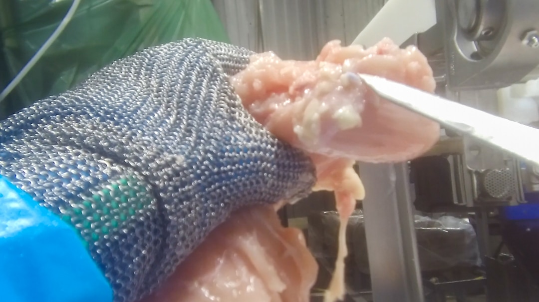 Many times, workers at the deboning line of the slaughterhouse found blue foreign material, which appeared to be plastic, in chicken flesh.