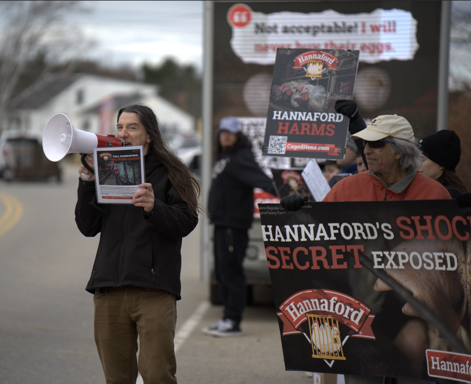 On the morning of November 17th, Mercy For Animals joined forces with compassionate advocates and State Representative Dylan Pugh at Hannaford headquarters in Scarborough, Maine. Their goal? To deliver thousands of petitions urging Hannaford Supermarkets to be transparent and go cage-free once and for all.