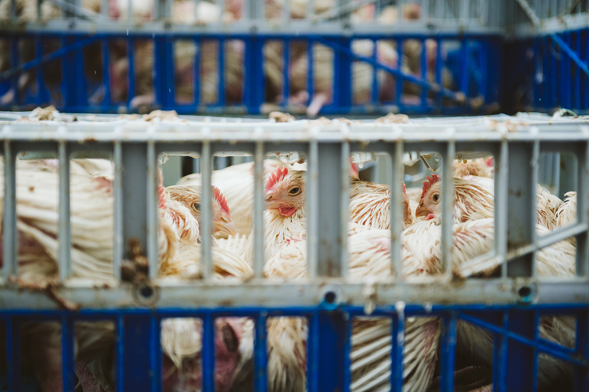 The H5N1 virus is particularly contagious and has run rampant in factory farms and LBMs, where chickens, turkeys, and other farmed animals are forced to live practically on top of one another. The virus has also made the leap to other species, including cats, racoons, grizzly bears, dolphins, cows used for dairy, and humans.