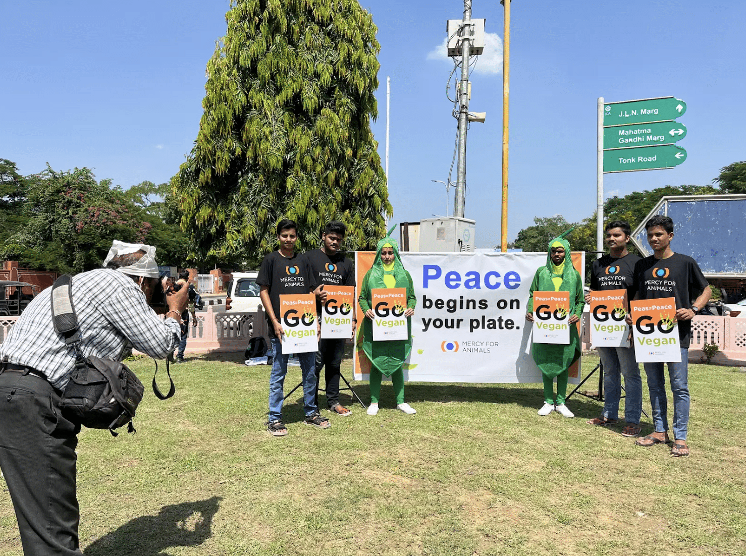 A demonstration at the Gandhi statue in Jaipur, Rajasthan, marked the exciting beginning of our volunteer program and activities in the state!
