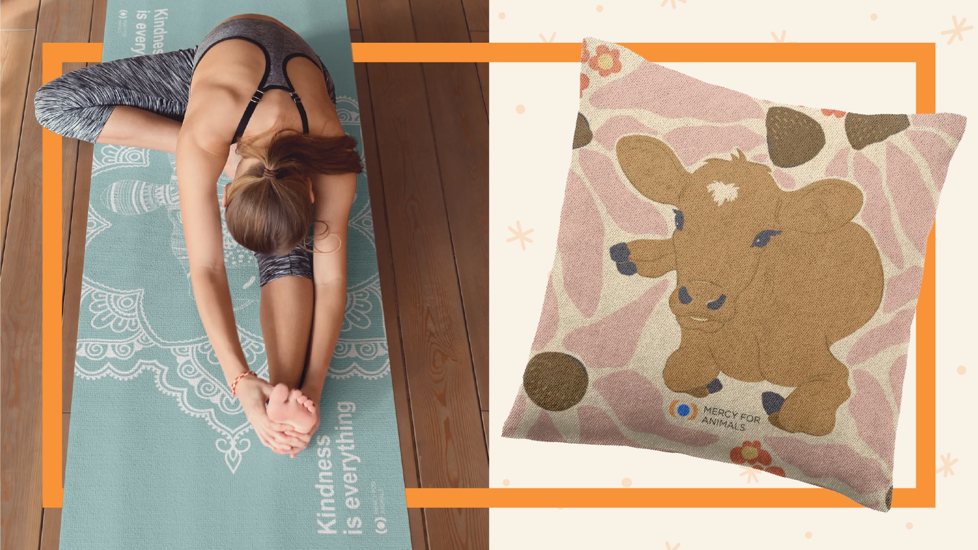 Mercy For Animals’ yoga mat is a must-have for beginners and seasoned health enthusiasts alike. Great for yoga, meditation, Pilates, or floor exercises, this quarter-inch-thick mat cushions bones and joints. Give as a gift or grab one for yourself!