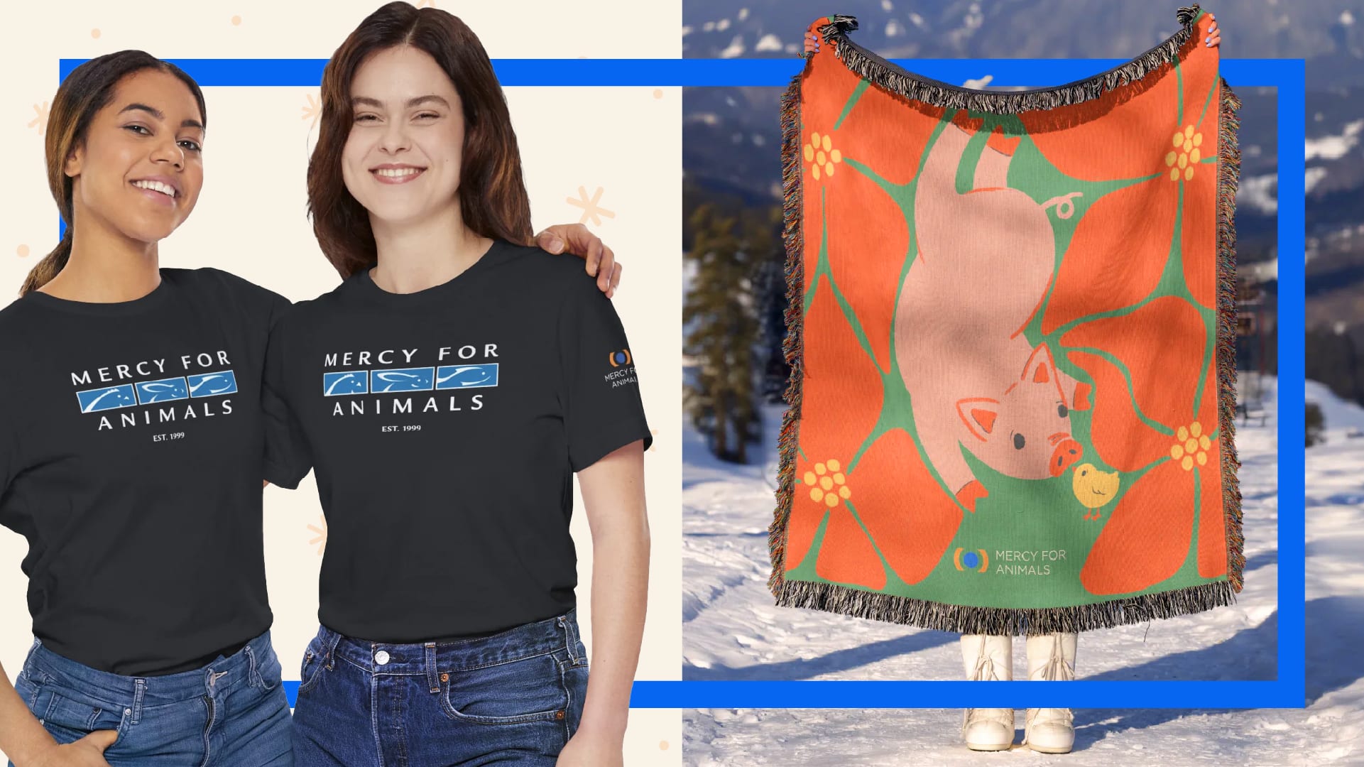 Snuggle up in Mercy For Animals’ endearingly sweet throw blanket! Anyone would love to wrap up on chilly nights with this gentle reminder that we all have limitless love and compassion.